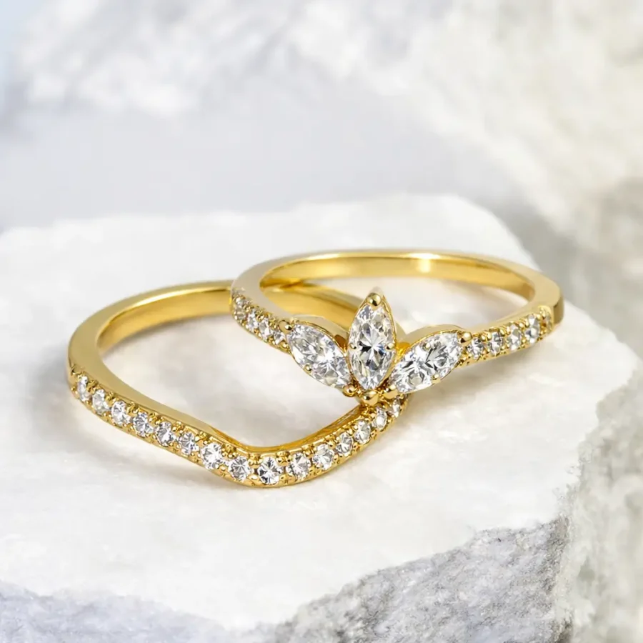 The perfect duo: a luminous solitaire paired with a pave band, designed to nest together with elegance.