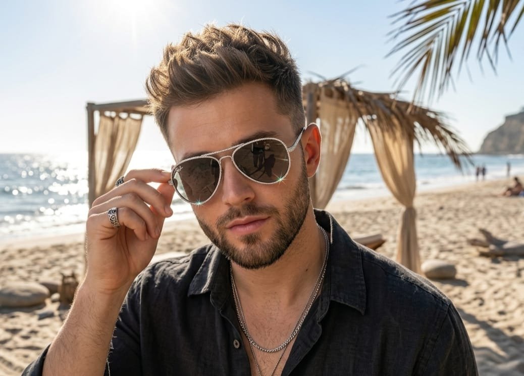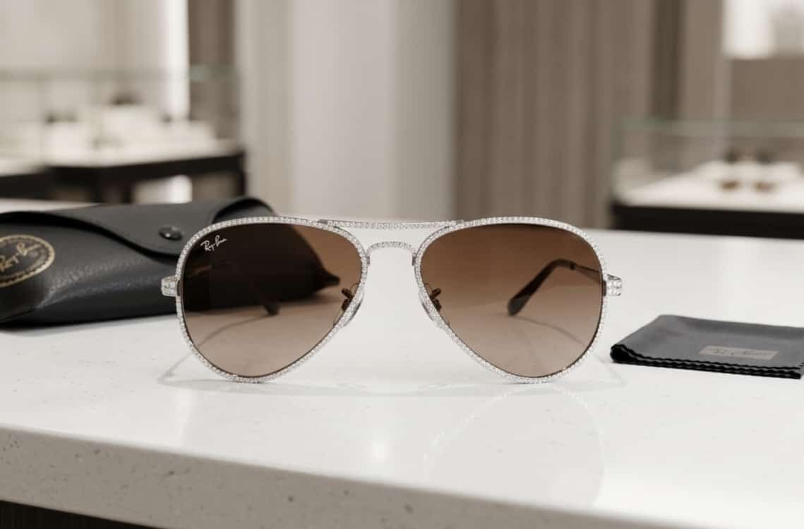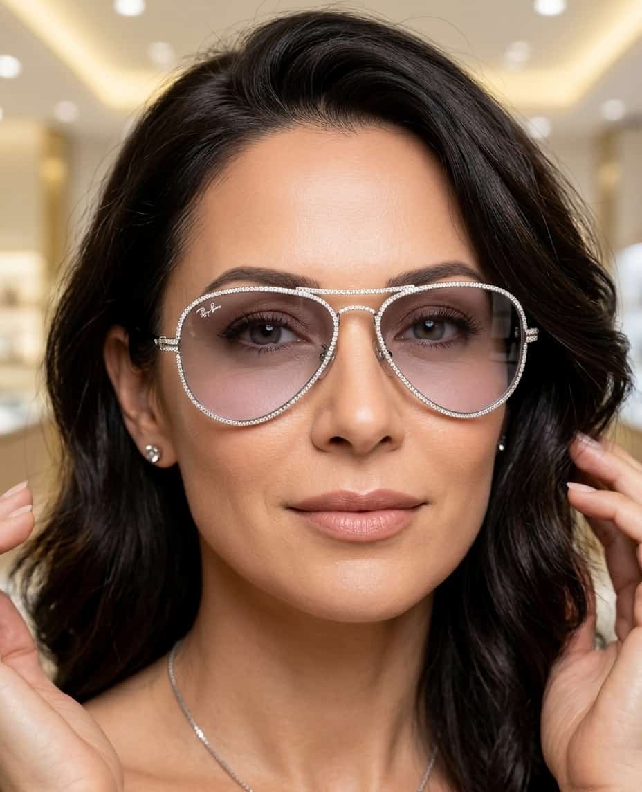 Designed as a bold statement accessory, this piece combines a refined silver-tone aviator frame with a total of 2.86 ct of lab-grown diamonds for a distinctive, light-catching finish. The softly tinted lenses and pavé-set frame create a confident silhouette that moves easily from everyday luxury to special occasions.